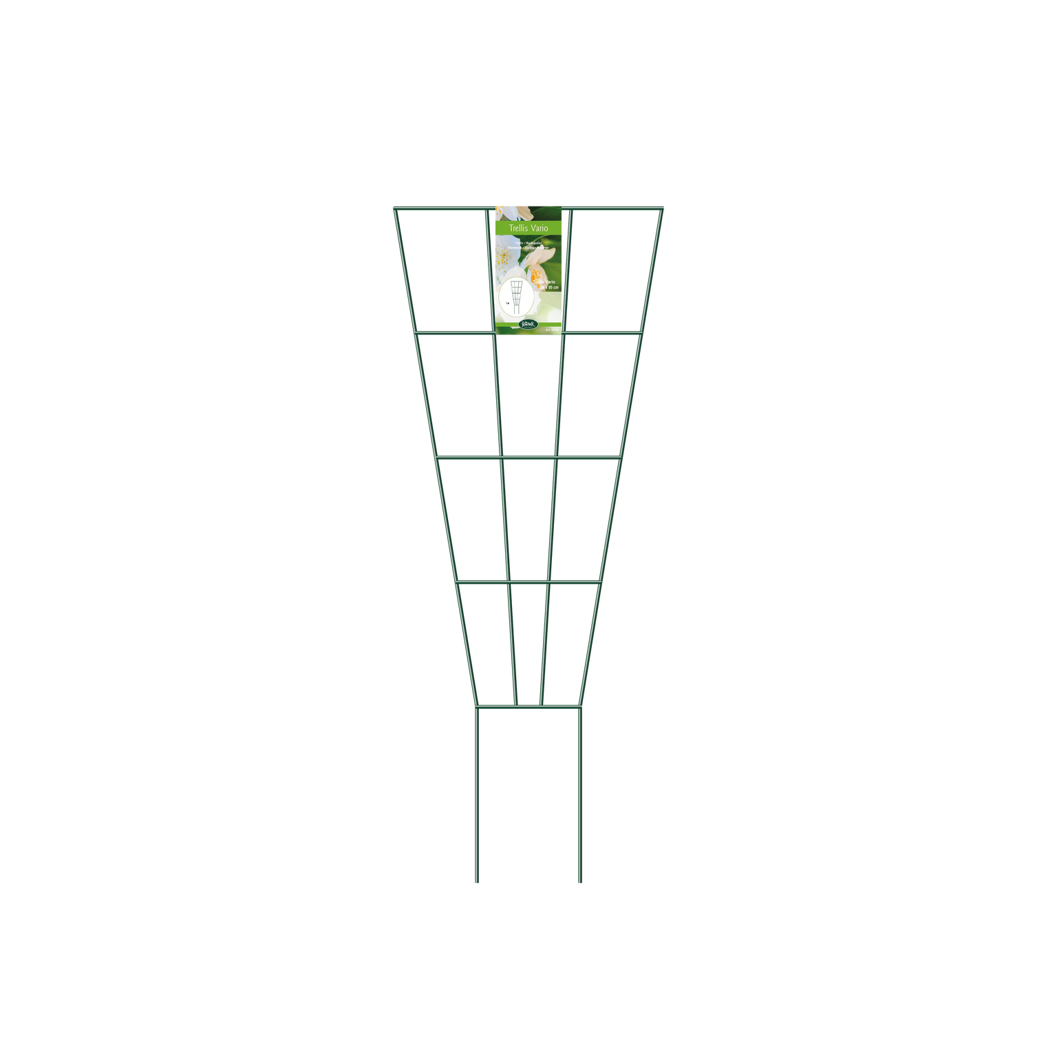 Vario trellises are supports designed for climbing plants in both pots and open soil. These sturdy trellises can be easily pushed into the earth behind the plant. This allows the climber to find its way up immediately, right from the start and throughout its growth. Thanks to the small mesh size of the Vario trellises, climbing plants can attach themselves easily, ensuring the trellis is covered with greenery in no time.