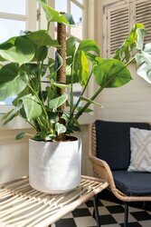 Veel tropische planten groeien in de natuur, op zoek naar licht, tegen bomen omhoog. In huis kun je met een kokosstok je kamerplant bij het omhoog groeien ondersteunen en hem in toom houden. Vooral kamerplanten zoals monstera, epipremnum en philodendron hebben zo’n ruggensteuntje nodig. Maar hoe zet die die bij de plant?