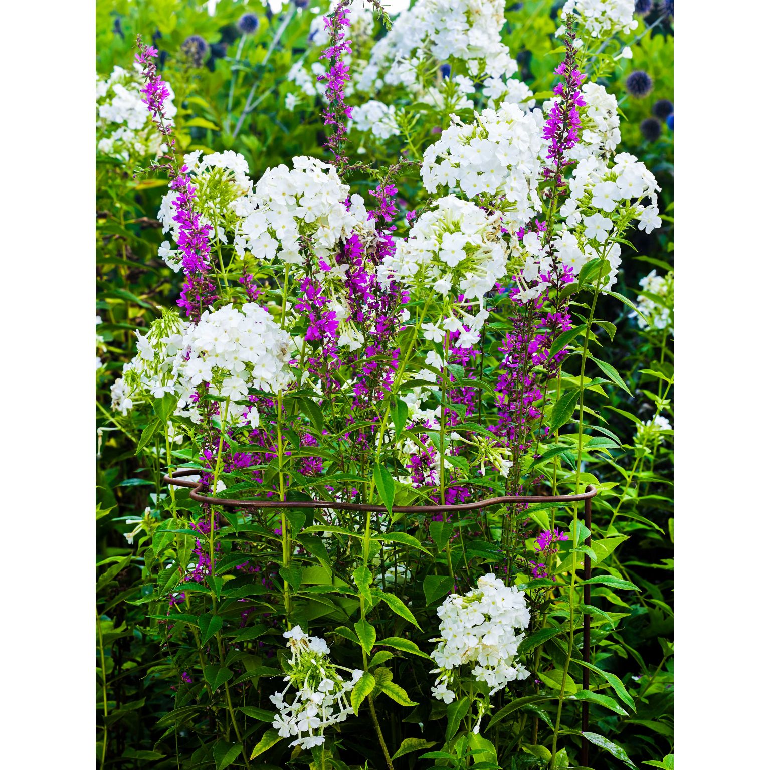 De “klassieker” onder de plantensteunen. Doordat de plantensteun bestaat uit een stuk, is deze gemakkelijk in gebruik en kan eenvoudig bij planten en volle bossages geplaatst worden.