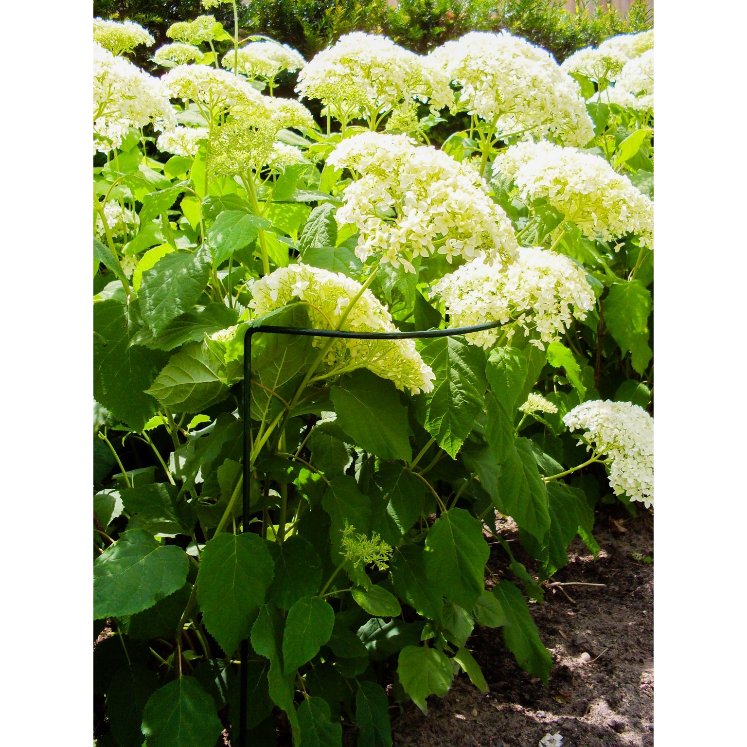 De “klassieker” onder de plantensteunen. Doordat de plantensteun bestaat uit een stuk, is deze gemakkelijk in gebruik en kan eenvoudig bij planten en volle bossages geplaatst worden. Gemaakt van hard verzinkt staal met een donker groene coating zijn de plantensteunen van hoogwaardige kwaliteit en roesten niet.