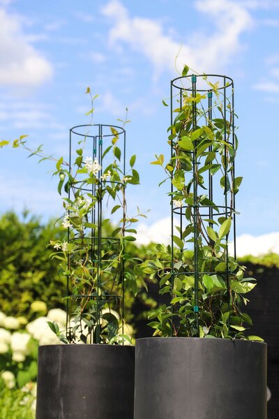 - Flexibiliteit: Je kunt de steunringen in hoogte verstellen naarmate de plant groeit, zodat je altijd de perfecte proporties in je border behoudt.